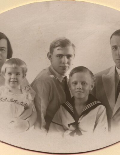 vlnr: moeder Chris Schipper. Toosje, (ARFCA), Johan (genoemd Bob), Eric, vader Jan van Baarda