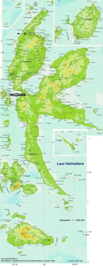 Bij de bovenste pijl vind je Duma en Galela waar Marie Johannes van Baarda en van Dijken gewoond en gewerkt hebben.